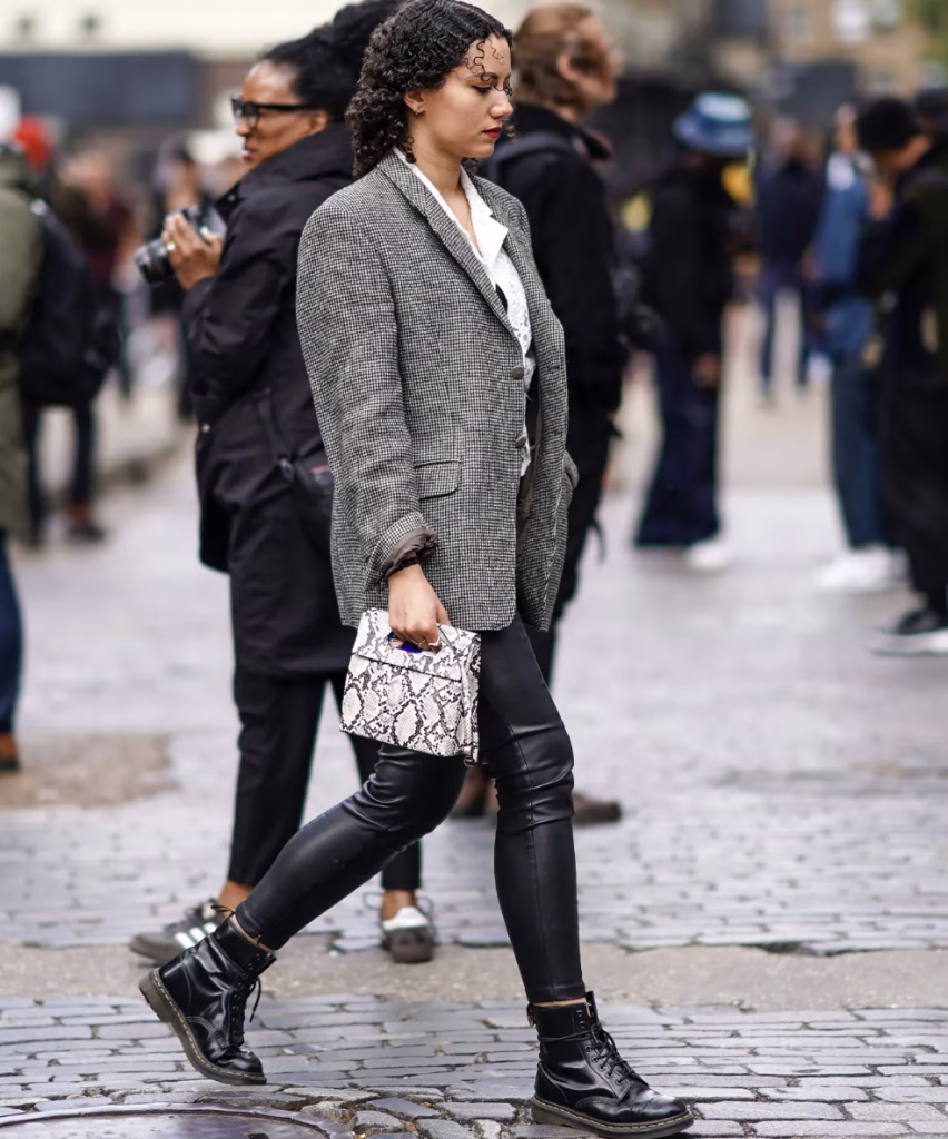 You can’t go wrong with black leggings and classic black ankle boots. Pair them with an oversized button-down, a chunky knit sweater, or even both. It’s an effortlessly cool combo that never goes out of style.