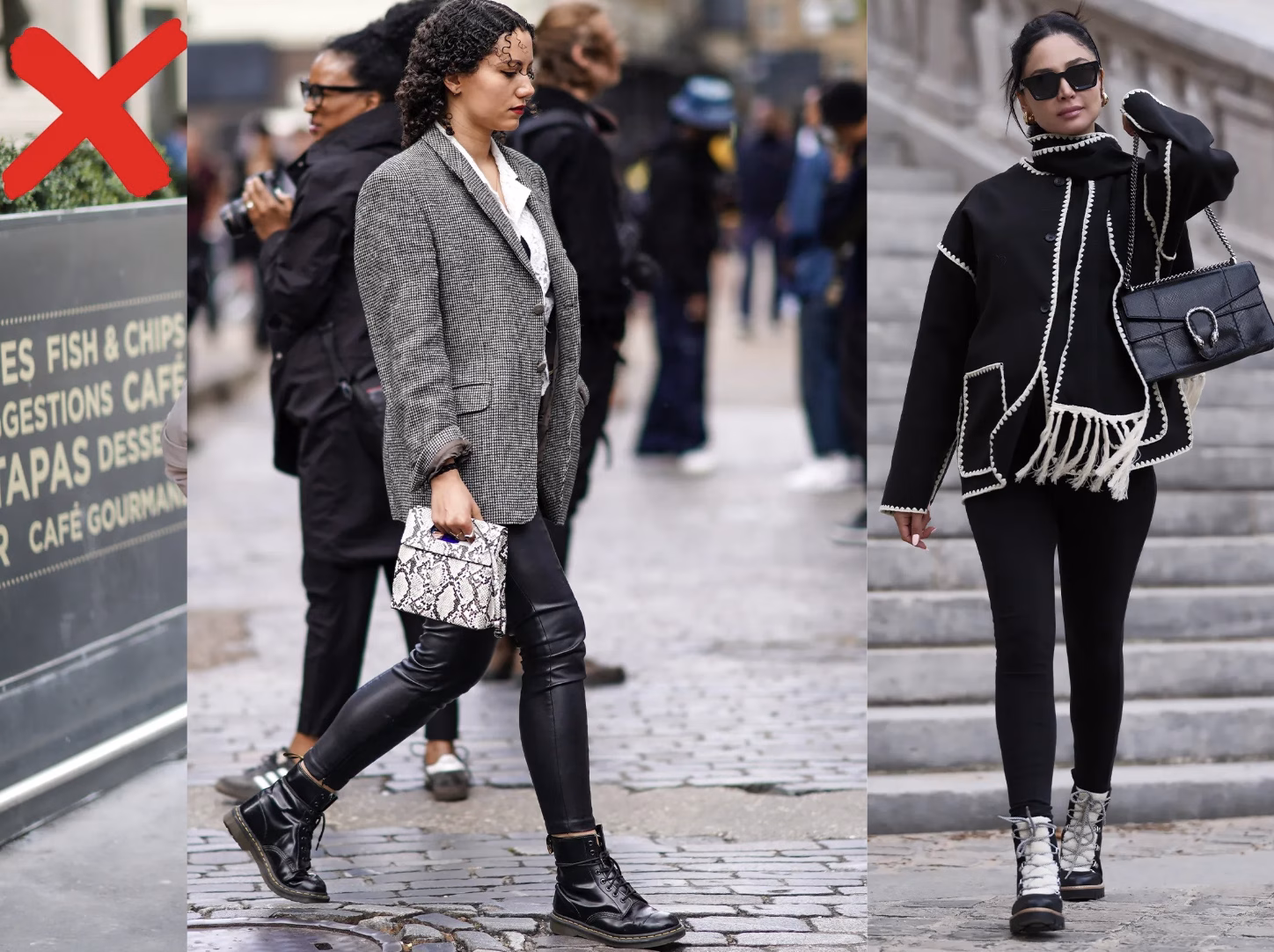 We get it—sometimes laundry day sneaks up on you, and you’re left with whatever’s clean. But capri-length leggings and ankle boots? A hard no. If you want to cover up, go for knee-high or over-the-knee boots instead.